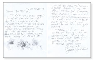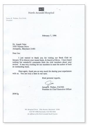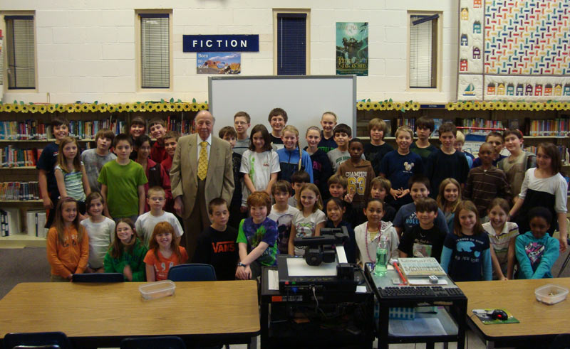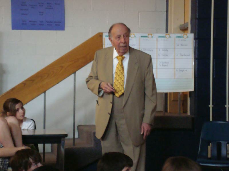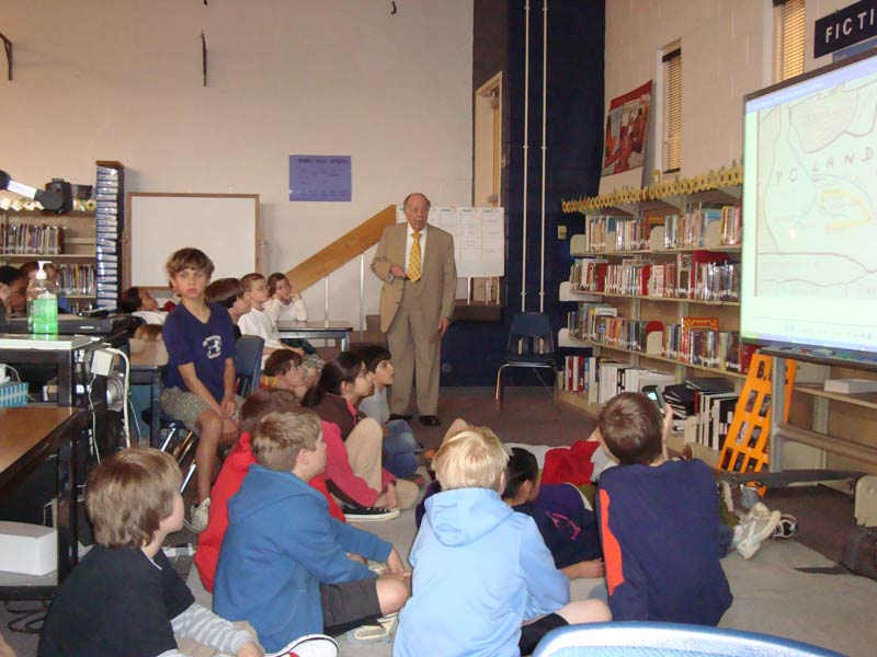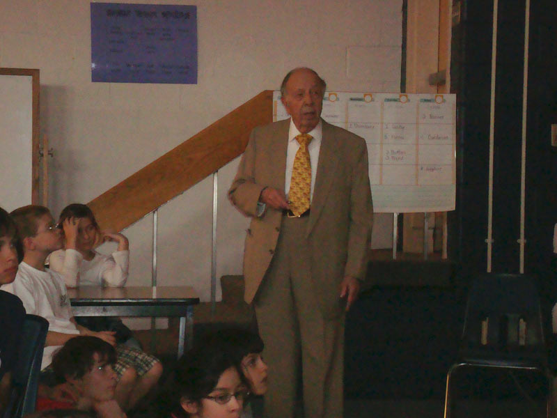 ![]() click image to enlarge and see more images Dr. Joseph Taler spoke to 5th graders at Severna Park Elementary School. photos courtesy of teachers Amanda Finnis and Gredel Funk ![]() The Author T-shirt given to Dr. Joseph Taler by Severna Park Elementary School after a lecture. ![]() The Author Athletic T-shirt and cap given to Dr. Joseph Taler by 360 ninth graders attending lecture about his WWII experiences. The event took place November 13, 2009 at the Chesapeake High School in Anne Arundel County. |