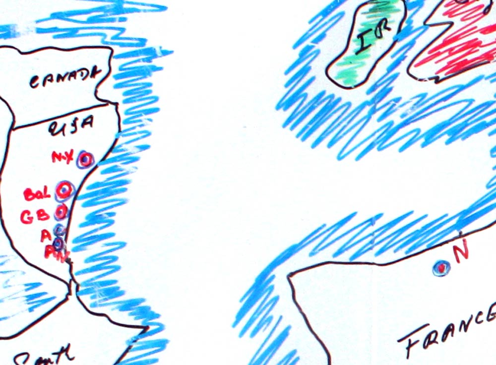 ![]() click image to enlarge Map of the World Map drawn by Joseph Taler |